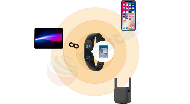 Физический состав: Модуль Bluetooth Low Energy = BLE-чип + необходимые периферийные схемы (кварцевый резонатор, конденсаторы и т. д.) + радиочастотная секция (схема согласования антенны) + экранирующий кожух (для предотвращения помех). Этот полный комплект позволяет сразу же начать использовать устройство, не занимаясь сложной радиочастотной схемой.