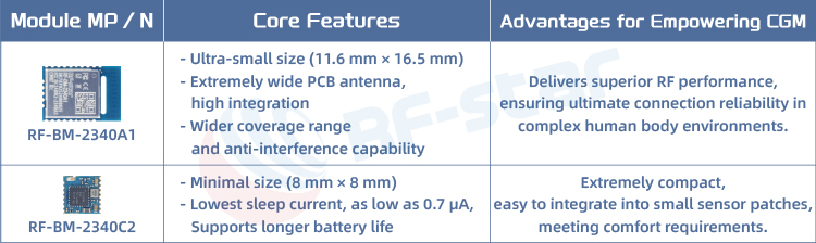 Будучи давним партнером TI, компания RF-star Technology выпускает Bluetooth-модули на базе микросхемы CC2340R5, предоставляя производителям CGM возможности подключения по принципу plug-and-play. Ниже представлен обзор основных модулей: